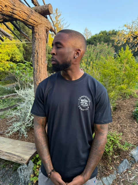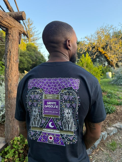 The Compound Grape Gasoline tee is printed on a navy 100% cotton classic short sleeve tee. Limited Edition, get yours before they sell out.